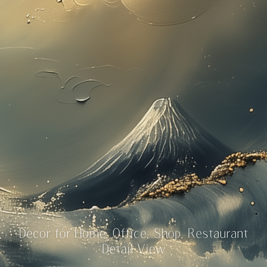 This piece channels the soul of Hokusai's vision into a darker, more tempestuous realm. Rendered in a rich, dramatic oil painting style, it captures the raw, untamed power of the ocean. The waves, rendered in deep indigo and black, crash with a fierce energy, their spray catching the light like flecks of gold. This stark contrast creates a powerful and unforgettable visual experience.