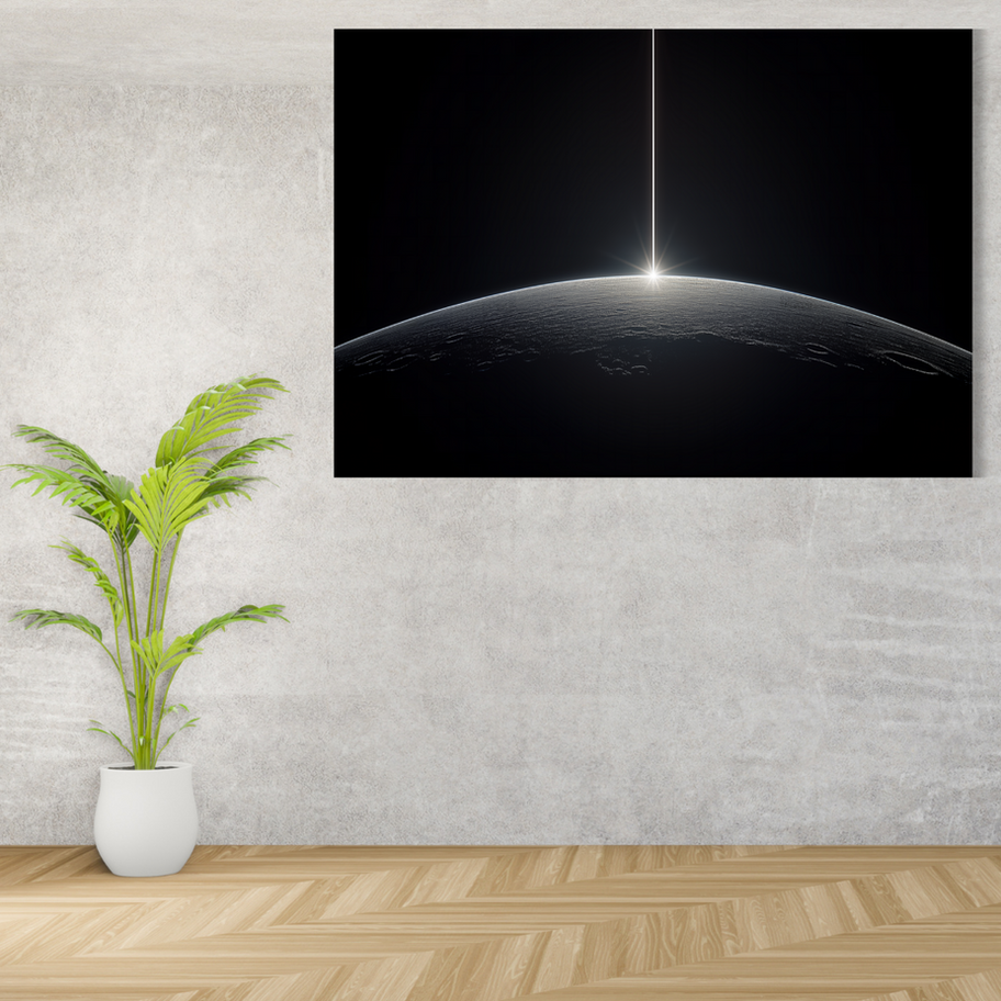 Transform your space with this exquisite acrylic print featuring a breathtaking depiction of cool black and white AI Photo artwork called "Eclipse Line" that enhanced silence and calming our heart that is created by an award-winning artist "saizoai". This stunning piece of AI Photography wall art showcases as modern cool expressions that bring calm and minimalism to the life, making it a perfect addition to any home decor, gallery, or office environment.
