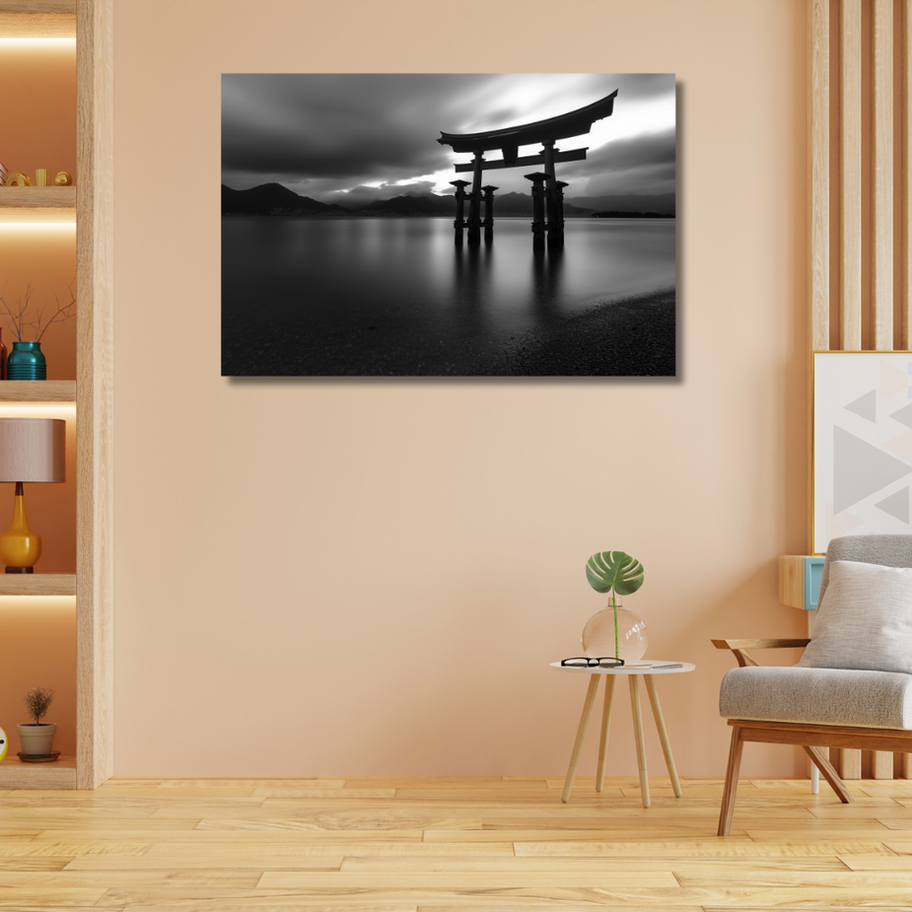 Transform your space with this exquisite acrylic print featuring a breathtaking depiction of cool black and white AI Photo artwork called "The Gate" that enhanced silence and calming our heart that is created by an award-winning artist "saizoai".